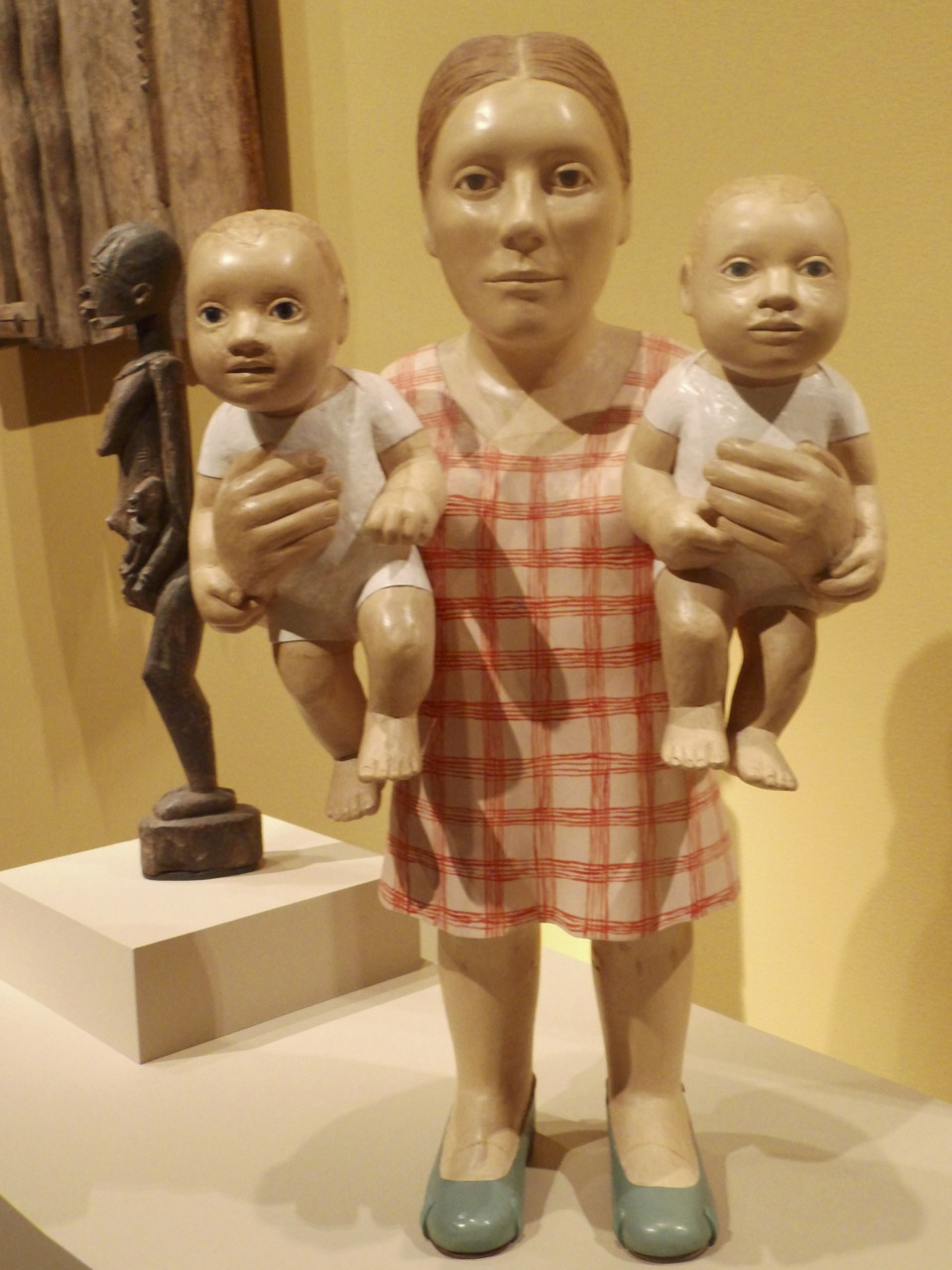 This poem translated from the Nigerian language group by Roger Wescott propounds a simple truth: it is a good thing to have children. Twins in particular have a religious significance. One of the cults of the Yoruba in Nigeria and Dahomey in West Africa is that of the ibeji (twins). The Yoruba differ from most West African tribes in welcoming the birth of twins and not considering them a moral calamity. Whenever one or both of the twins die, small twin figures such as the ones pictured here are carved in order to avert further visitations of death on the family. The figures are kept in family shrines and are ceremonially fed and anointed with oils on certain days to insure that the spirits of the dead twin or twins may remain with the tribe. /