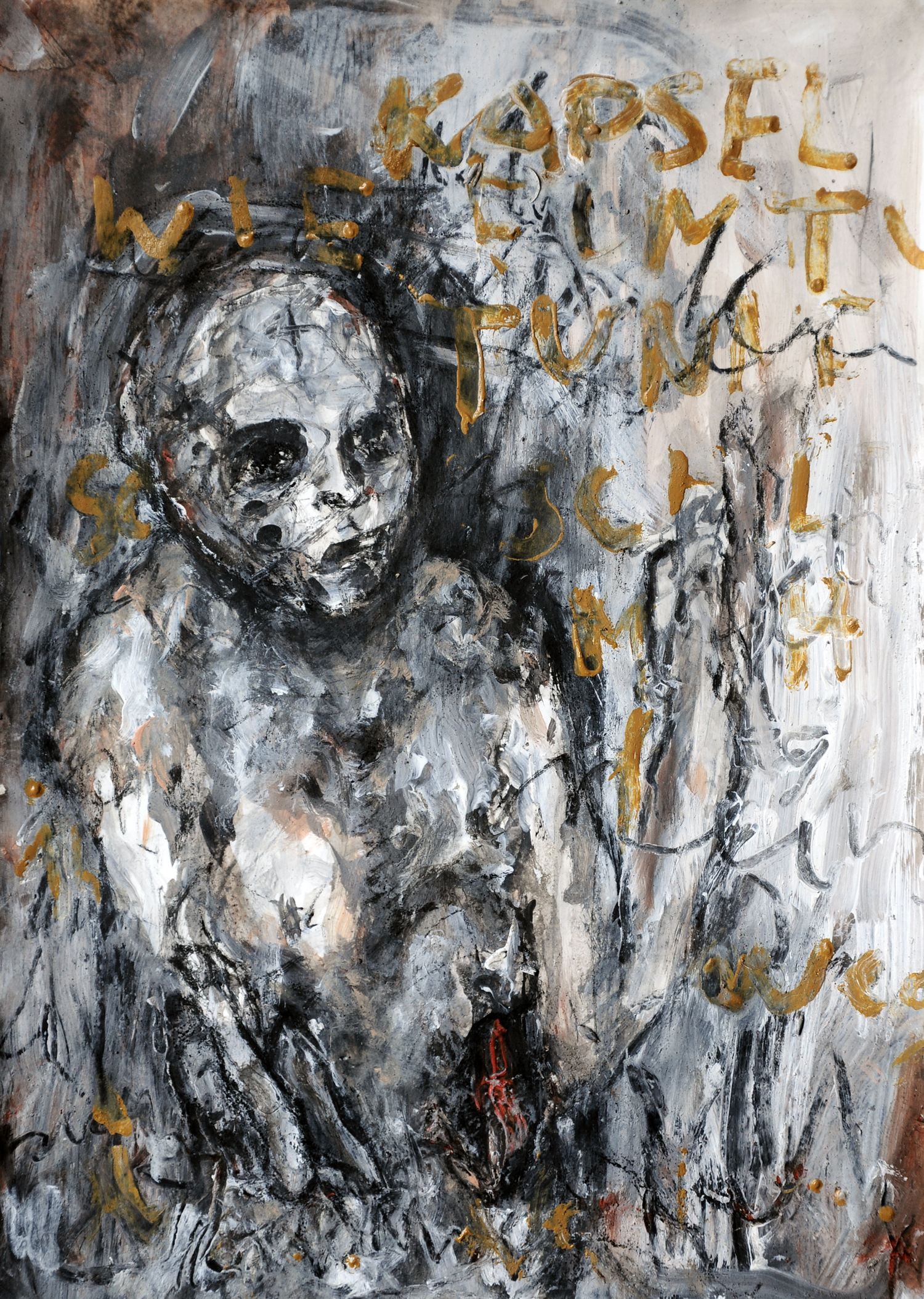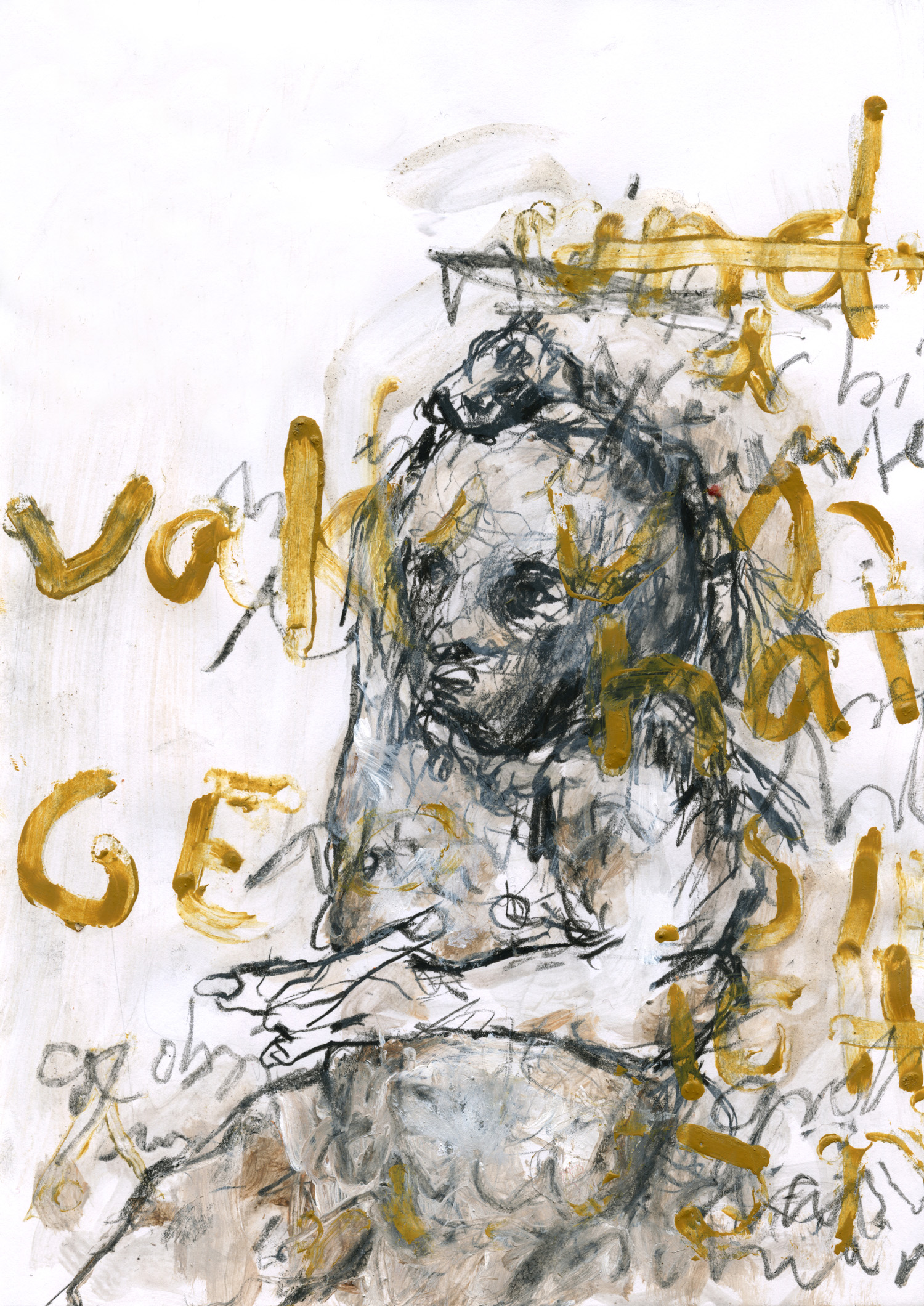 IST DER NEUE GRUNDBESITZ / EINFACHER HERAUSGESAGT: DER ACKER DER EIGENTLICHKEIT und zuerster wird dieses flurstück durch die sprache vermessen ,die sich dafür lebendig hergibt: jeder hat sie, wenn er seine angst eroberter für sich behalten kann und ruhig in seinen brunnen dabei schaut: denn im tumult lässt sich nichts verstehen, zumindest nicht das eigene wort : die pioniere dieser landstriche aber werden das tun und natürlich sogleich werden sie als abgehalfterte narren an den schrottplatz der gesundheit sondermüllgetrennt und die PSYCHOINDEXE werden es handlangern: der bennimmt sich eigenartig, der ist so seltsam und bestimmt gehört der auch in die klappse, na klar gehört der dahin und WIESO WIESO NICHT sollte man dafür nicht eine gute KRANKHEIT erfinden, die es dann möglich macht: die verfrachtung dieses menschen in ein SONDERHEIM, … , aber das ist ja nun auch die gemeine sogenannte aktuelle herangehensweise und vielleicht wird es widerlich so sauber bleiben, so, dass jeder jedermann elektrogeschockt wird oder pharmakorrigiert, wenn er nicht funktionstüchtiger ist ,also: ein mängelexemplar, das nicht tut, was es soll, was ihm aufverschrieben worden ist, und JA JA sowas hat auch funktionsuntüchtig in der funktion nichts verloren , nicht mal in der ramschkiste, , folglich hat es sich auch keinen millimeter von einem platz in der menschenmitte verdient und nur die minimale lebensabsicherung , die absicherung in einem sperrgebiet und das heißt genau : das zu VERMÄNGELTE FALSCHE wird sondergetrennt vom RICHTIGEN: DAS RICHTIGE IST ALSO DAS FALSCHE – DIE NORMALITÄT / DIE HARMLOSIGKEIT / DIE ÜBERZAHL , … der großartige heidegger nannte diesen menschenmenschhaufen das MAN: das macht das MAN eben so und was das MAN nicht macht, das macht MAN eben nicht , aber DER BARBAR DER EIGENTLICHKEIT macht es und NA KLAR ist das daneben , nicht richtig und weg mit ihm so schwer erziehbar wie er ist, so schwer behindert, so schwer von begriff: aber er ist von begriff, von verbotenen begriffen, die weggesperrt sind und für vollunmündig aberklärt vom richtigen ausdruck,… die eigene sprache also: wird von rechtschreibern / vertretern / sachverständigen unsichtbar in einem schatten ins jenseits fortbuchstabiert: es werden kaum bücher davon gedruckt, es werden kaum ausstellungen davon gemacht, es wird nicht gesprochen über die sprache, die es eigentlich meint und also folglich ist die gegnerschaft das dummköpfig obere, das frömmige brave, das , was sich in den akademien abspielt, das, was an den literaturzentren glaswassergelesen oder preisverliehen wird und das, was auf den biennalen angespeichelt wird mit der rendite: DENN DAS IST DIE SACHE DER EINGEPASSTEN UND NICHT DIE SACHE nicht die