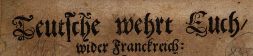 „Teutsche wehrt Euch!“ gegen Frankreich, lese ich in einer Schrift von 1689.
