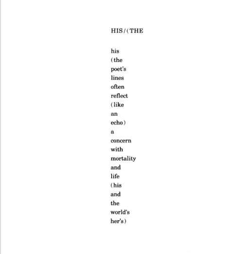 Ein Gedicht aus dem Band Common Sense (reprinted this year by Wesleyan, originally published in 1978 by Curtis Faville’s L Publications):