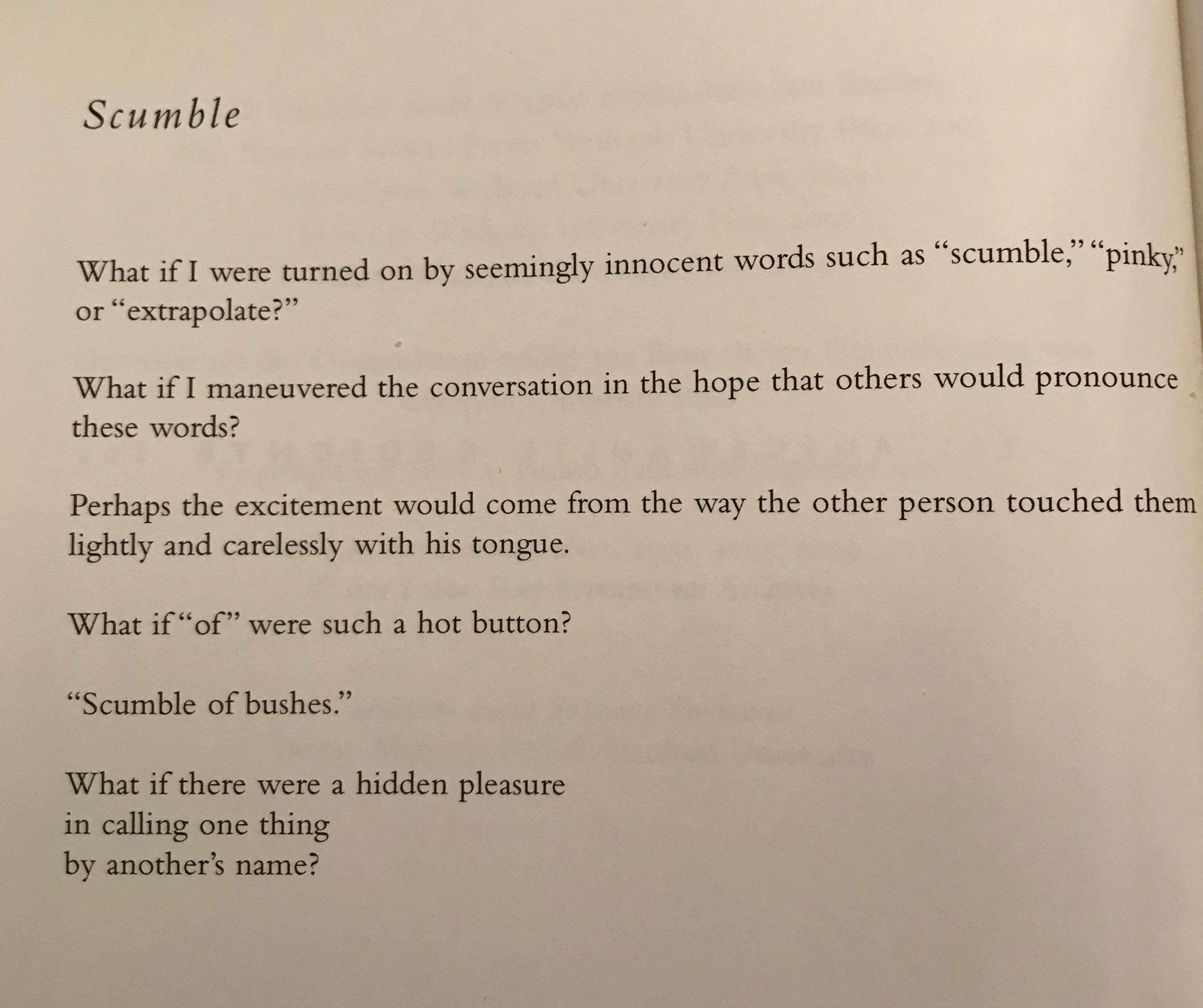 Aus: Rae Armantrout: narrativ. Ausgewählte Gedichte. Aus dem Amerikanischen von Uda Strätling & Matthias Göritz. Wiesbaden: luxbooks, 2009 (luxbooks.americana), S. 8f