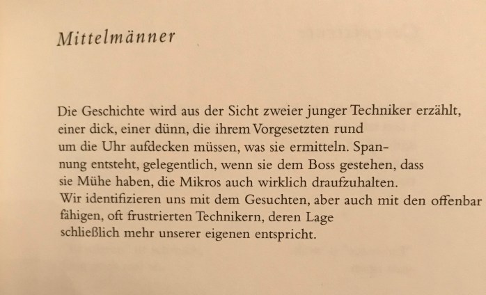 Der Mann, der sie einander vorgestellt hatte, mochte eigentlich keinen von beiden besonders, tat jedoch so, weil er das gute Verhältnis nicht belasten wollte. Man konnte ja nie wissen, oder? Oder? Man konnte ja nie wissen. “