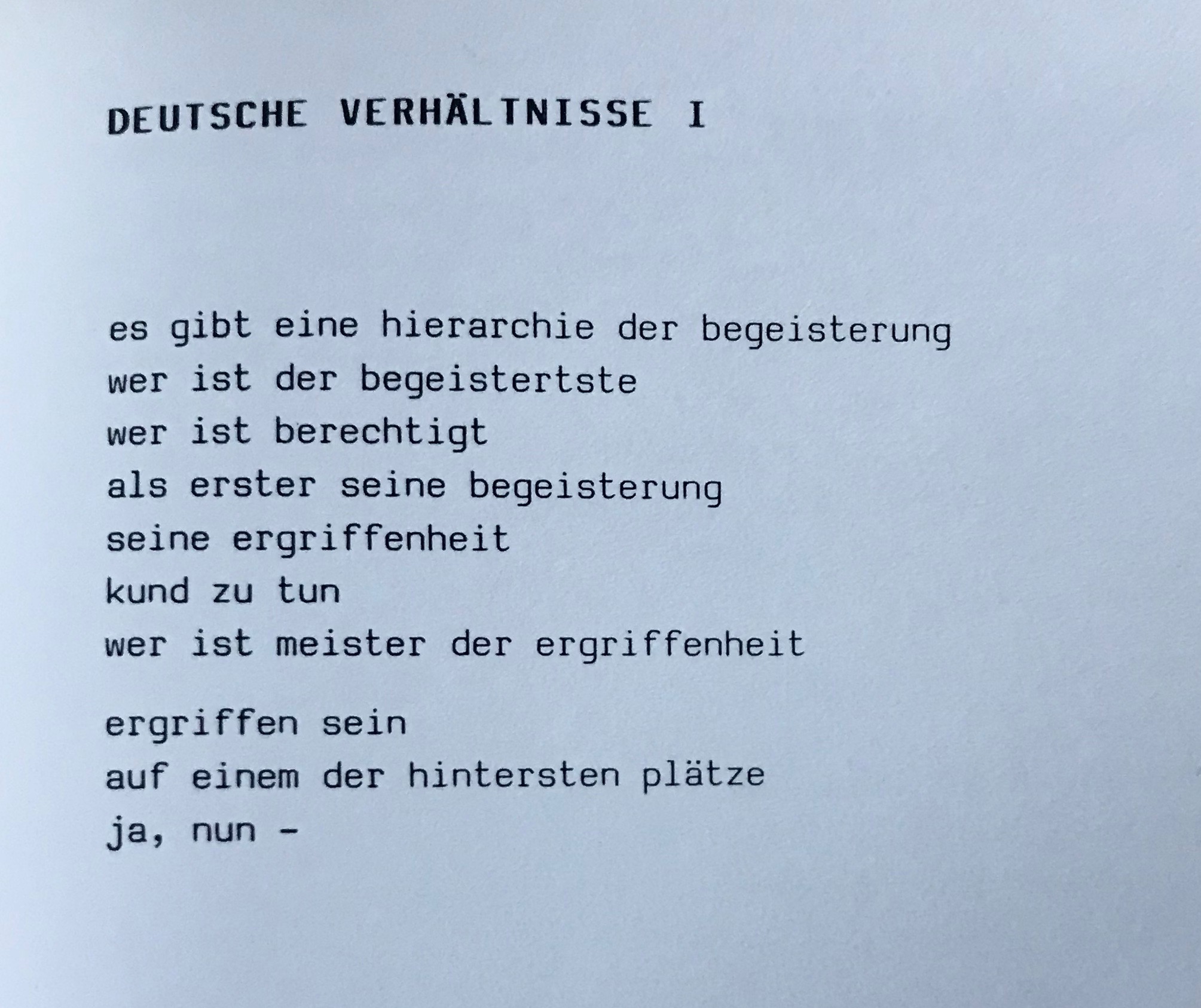 Aus: Peter Huckauf: Tykocin. Gedichte. Berlin: Verlag Neue Freiheit, 2000 (unpag.)