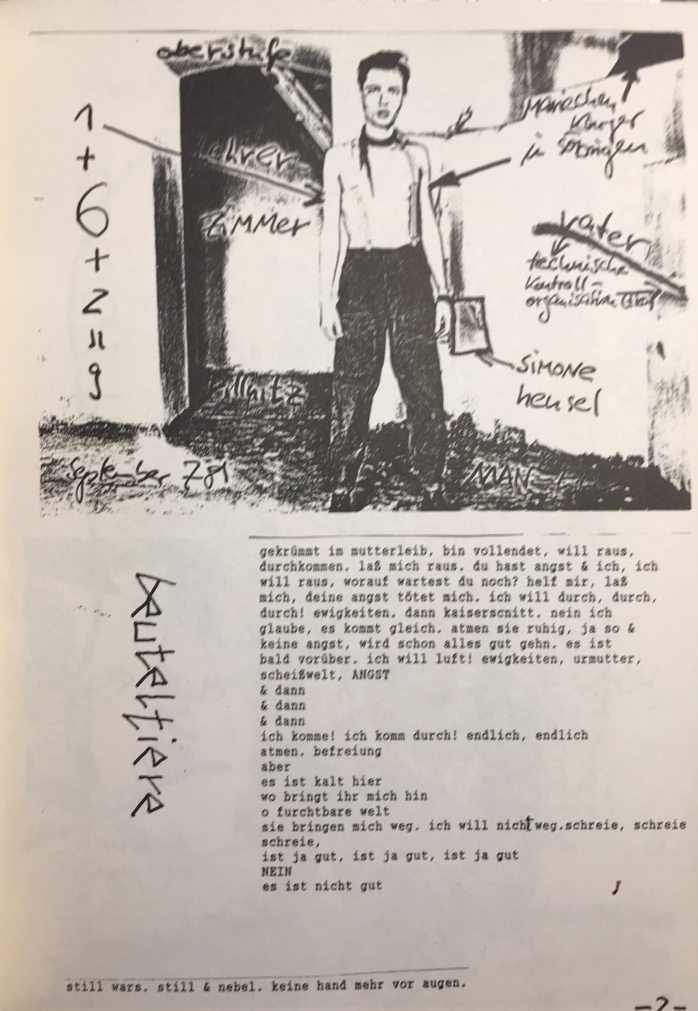 Aus: flanzendörfer: unmöglich es leben. texte bilder fotos. Zusammengestellt von Peter Böthig und Klaus Michael. Berlin: Janus press / Basisdruck, 1992