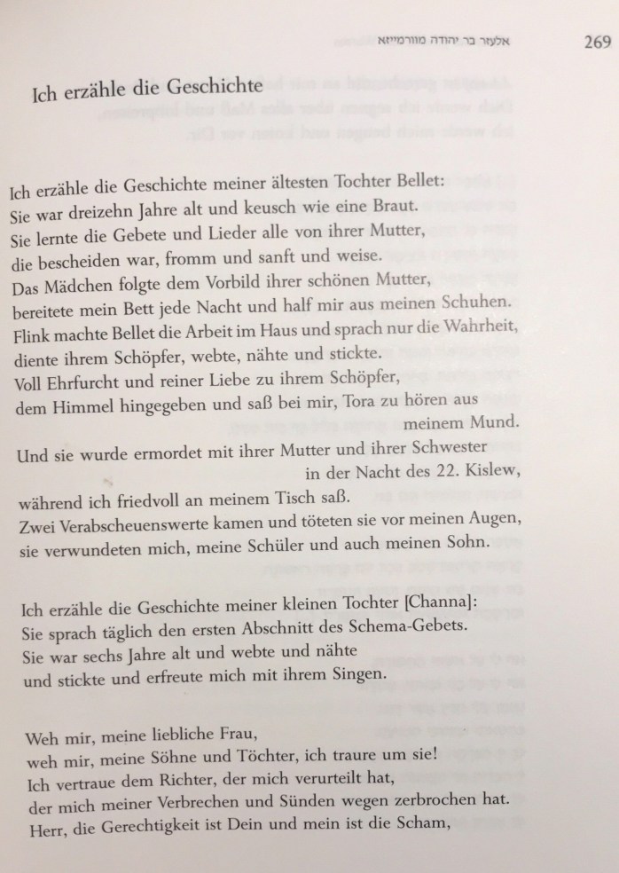 Kategorie: Deutschland, HebräischSchlagworte: Elasar bar Jehuda aus Worms, Und sie wurde ermordet mit ihrer Mutter und ihrer Schwester / Zwei Verabscheuenswerte kamen und töteten sie vor meinen Augen #Pogrom