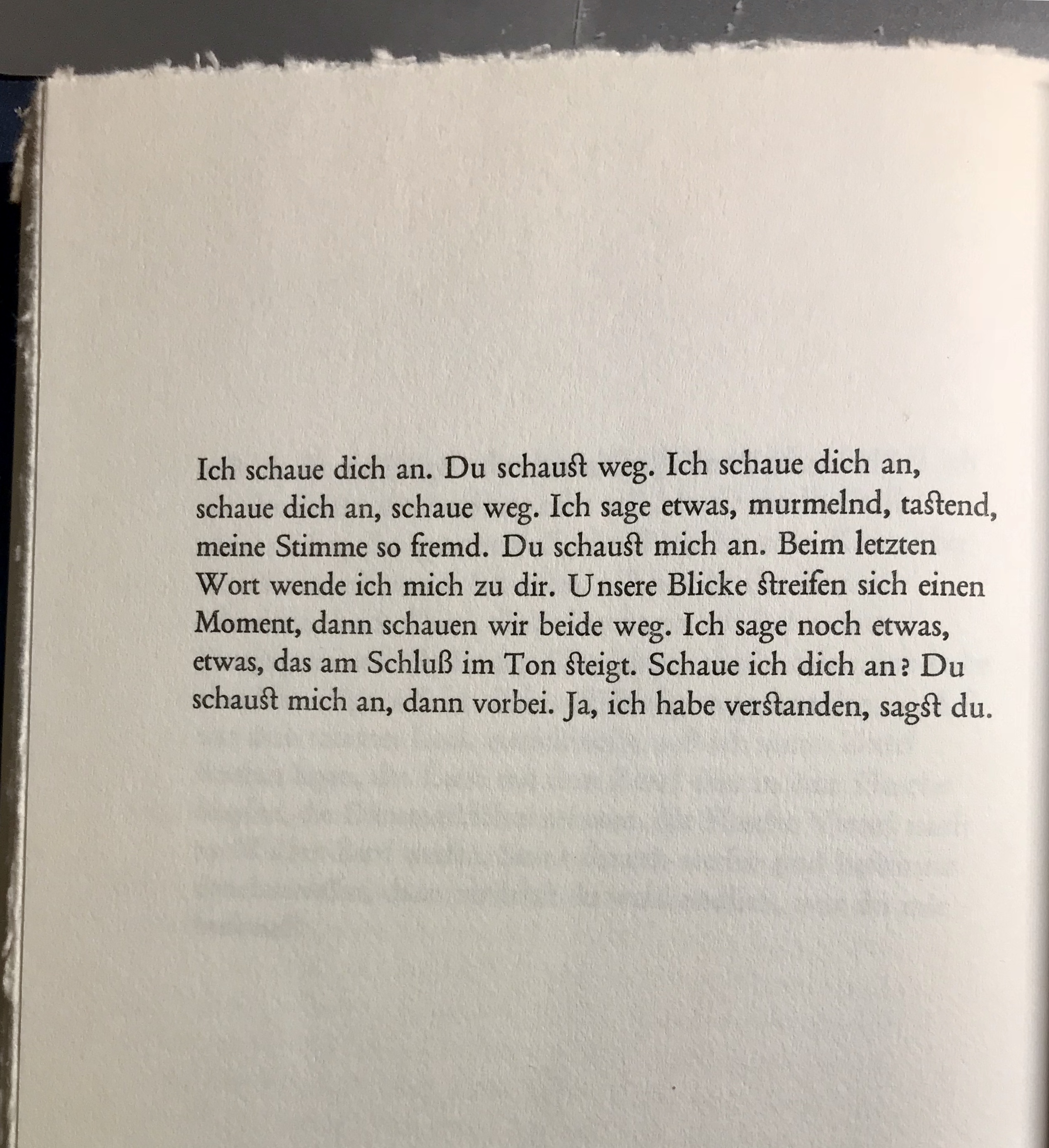 Aus: Von Zimmer zu Zimmer. SAD & CRAZY. Aus dem Norwegischen von Walter Baumgartner (mit einem Nachwort von Peter Bichsel). Olten: Walter, 1968, S. 52