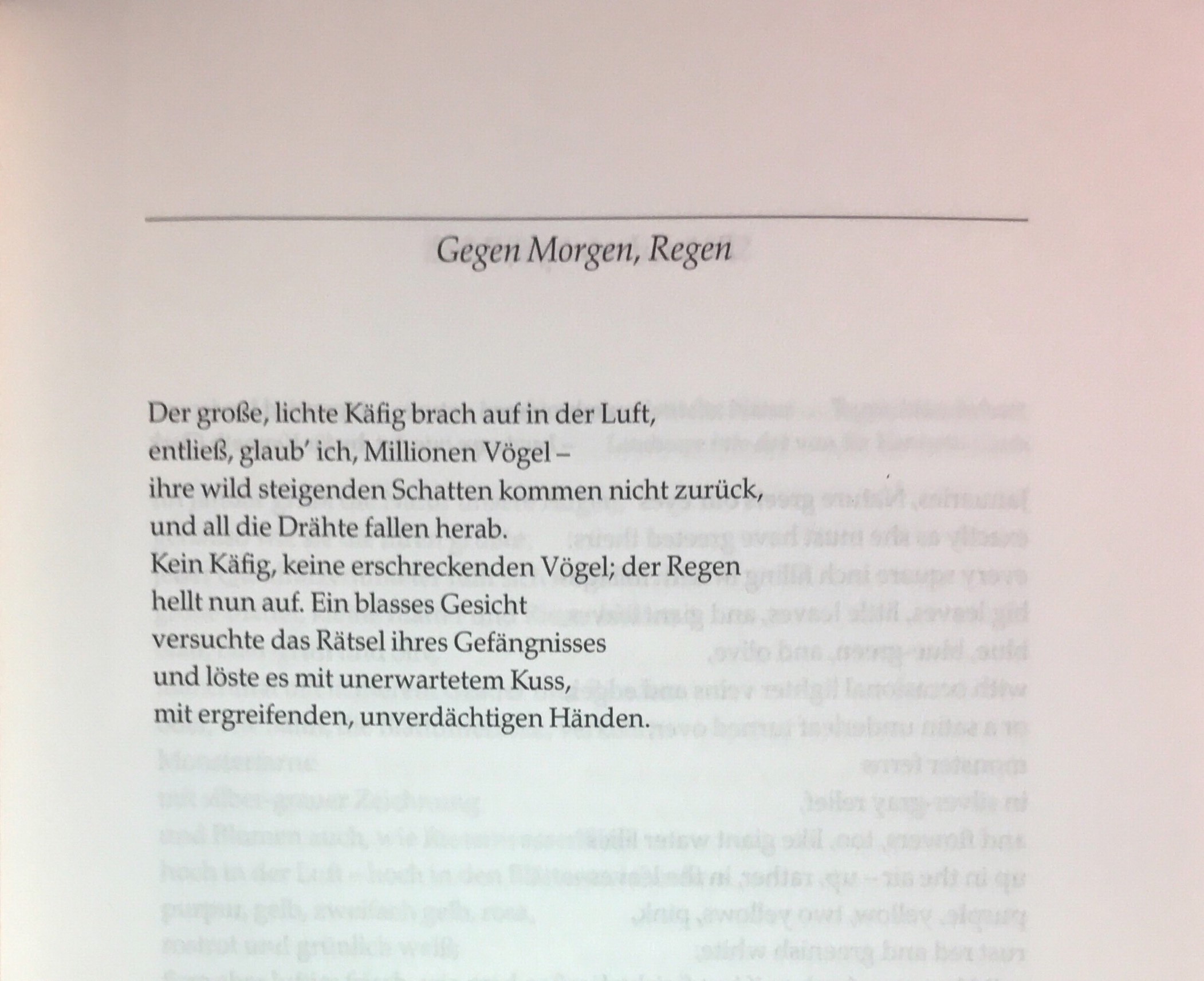 Aus: Elizabeth Bishop: Alles Meer ein gleitender Marmor. Gedichte. Hrsg., übers. u.m.e. Einleitung von Klaus Martens. Heidelberg: Mattes, 2011, S. 24f