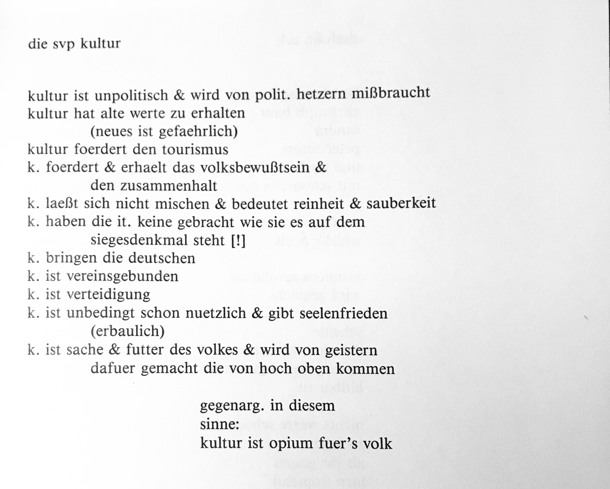 Aus: norbert c. kaser: gedichte (gesammelte werke band 1) Hrsg. Sigurd Paul Scheichl. Innsbruck: Haymon, 1988, S. 413
