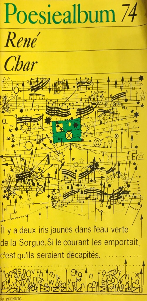 Aus: René Char: Poesiealbum 74. Hrsg. Bernd Jentzsch. Berlin: Neues Leben, 1973, S. 19