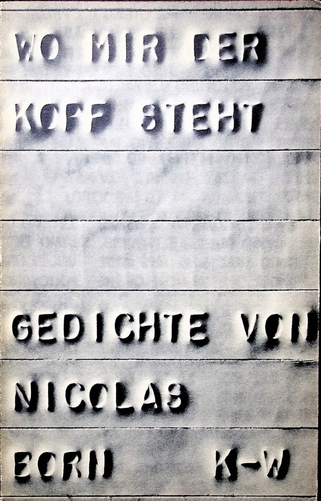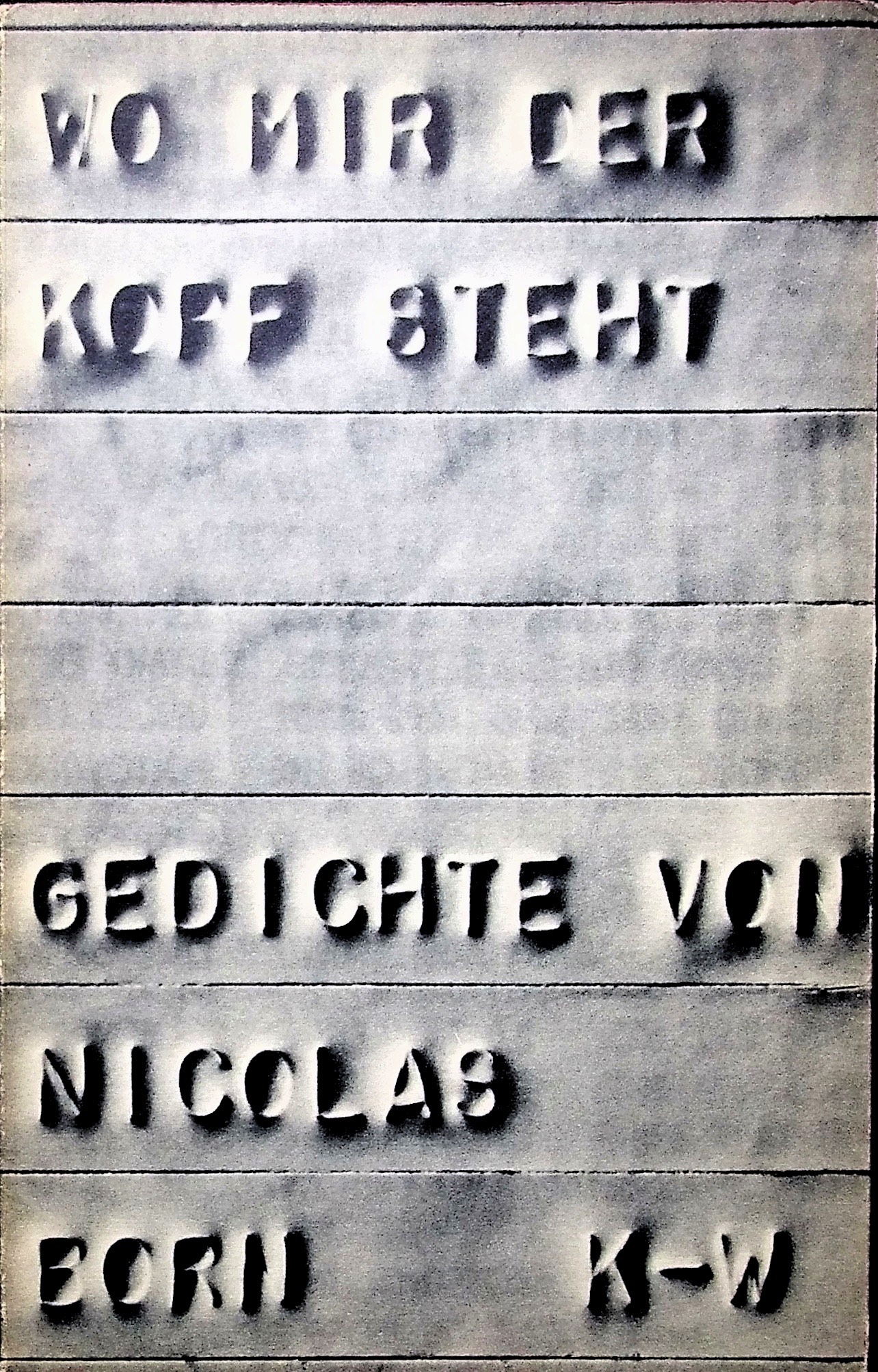Aus: Nicolas Born: Wo mir der Kopf steht. Gedichte. Köln, Berlin: Kiepenheuer & Witsch, 1970, S. 5