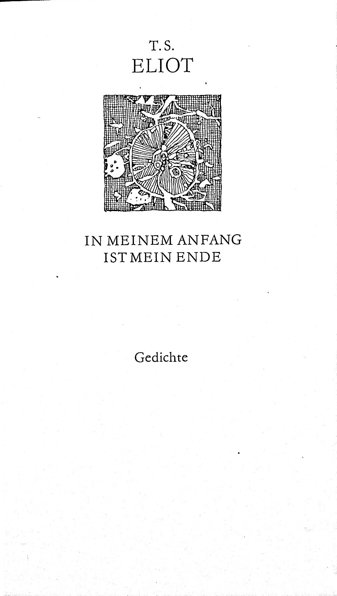 Aus: T.S. Eliot: In meinem Anfang ist mein Ende. Gedichte. Berlin: Volk und Welt, 1977, S. 34f. Auch in: T.S. Eliot: Gesammelte Gedichte. Hrsg. Eva Hesse. Suhrkamp Taschenbuch 1988, S. 62f.