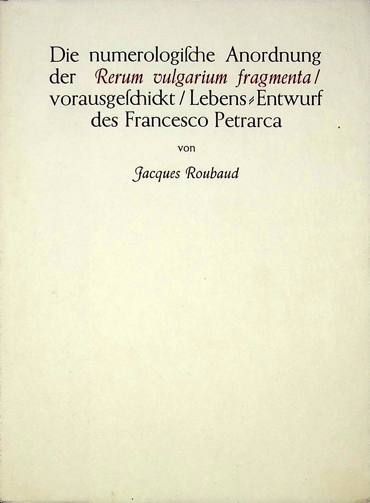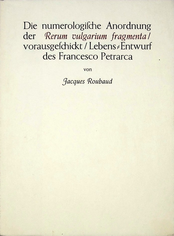 Aus: Die numerologische Anordnung der Rerum vulgarium fragmenta / vorausgeschickt / Lebens-Entwurf des Francesco Petrarca von Jacques Roubaud. Berlin: Edition Plasma, 1997, S. 14f