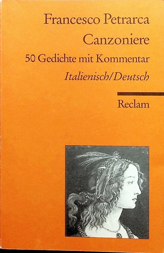 Aus: Francesco Petrarca: Canzoniere. 50 Gedichte mit Kommentar. Italienisch/Deutsch. Übersetzt und herausgegeben von Peter Brockmeier. Stuttgart: Reclam, 2006, S. 17.
