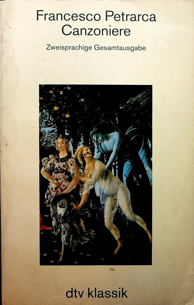 Aus: Petrarca: Canzoniere. Zweisprachige Gesamtausgabe. München: dtv, 1993, S. 11 (zuvor 1989 und 1990 bei Stroemfeld / Roter Stern).