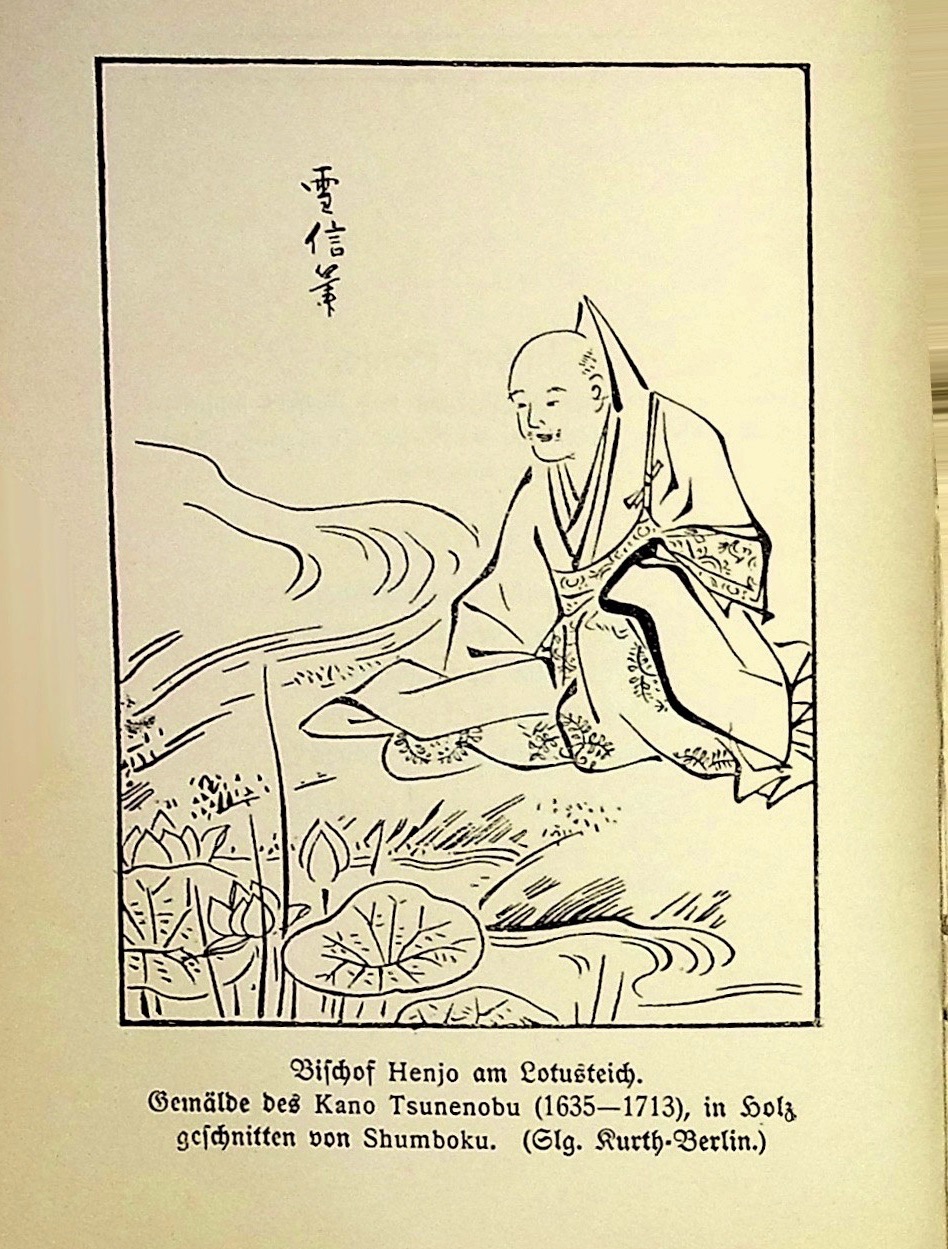 Das Gedicht des Tages kommt heute um 12 Stunden versetzt. Inzwischen als Platzhalter ein Nachtrag zum gestrigen Lotusgedicht des Bischofs Henjo aus dem gestern zitierten Buch von Julius Kurth
