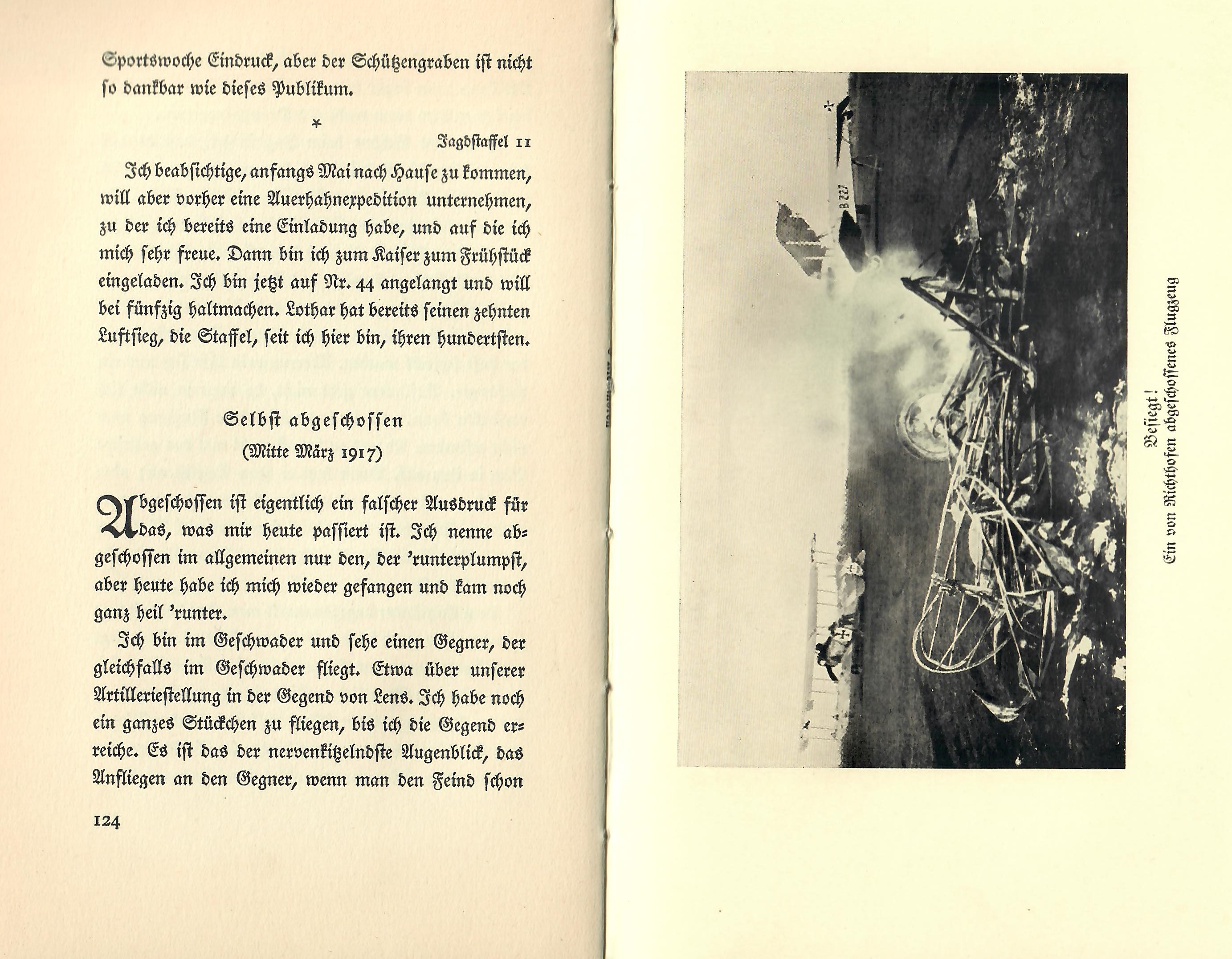 Mit diebischem Vergnügen denke ich zurück an die verschreckten Gesichter im Kursaal von Meran. Erwartet wurde, dass ich als Preisträger (Hauptschuldiger) etwas vortrage, mit dem etwas zu gewinnen war. Ich habe getan, was Ort und Situation geboten: Demjenigen zu danken, dem ich alles verdanke; und der – 102 Jahre zuvor – nur einen Schwalbenflug entfernt in Untermais verstorben ist. Für den Fall der Fälle hatte ich mir die speckige Cassirer-Ausgabe von 1932 eingepackt. Schon die Ankündigung, etwas von Christian Morgenstern lesen zu werden, ließ alles Feierlich-Weihevolle aus dem Saal entweichen. Morgenstern gilt als Kleinkünstler, als Spaßmacher, als Endorphingarant. Über einen Frontbesuch der Rezitatorin Resi Langer im Ersten Weltkrieg lesen wir in den Erinnerungen von Huelsenbeck: „Sie fuhr ins Feld, […] um dort in der Etappe den Truppen Morgenstern und Busch vorzutragen. […] Mit Morgenstern, dachte sich die Oberste Heeresleitung, geht es besser, und es ging in der Tat. R.L. erzählte […] wie dankbar Soldaten ihr, Trude Hesterberg und Claire Waldorf [!] für die Vorträge waren.“ (zit. nach: R. Tgahrt, Dichter lesen, Bd. 3, Marbach 1995, S. 127). Der Siegener Dichter Crauss fügt, ausgehend vom Fakt, dass Morgensterns Verse auch unter den fliegenden Killern des Kaisers populär waren, diese Männerphantasien zu einem Cento zusammen; Galgenhumor hat auch diese freiwillig düstere Seite. Der schnoddrige Stil der herangezogenen Kampfbeschreibungen von Hans Reimann (Mein blaues Wunder, München 1959) und Max Immelmann (Meine Kampfflüge, posthum, Berlin 1916) ähnelt sich frappant, wobei Immelmann, im Gegensatz zu Reimann, gewiss kein Morgensternleser war — und doch ist kaum ein Flugmanöver denkbar, das so morgensternesk wäre wie der „Immelmann“; Morgenstern wiederum wäre — und vielleicht ist das kein Avantgardeulk — das erste Fliegerass unter den Dichtern.