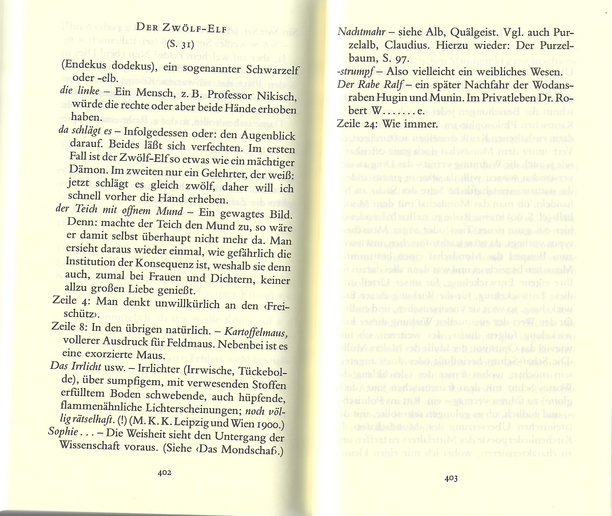 Auf unser Steckenpferdchen geschnallt, wäre die Frage: Ist Morgensterns Nachtgesang nicht tatsächlich eine derbe Persiflage auf Klopstocks Didaxe-Pedanterie? Etwas in diese Richtung ging ja Deine „Auflösung“. Und Klopstock war Säulenheiliger von Dichterking George, und d e n hatte Morgenstern ganz sicher im Visier …