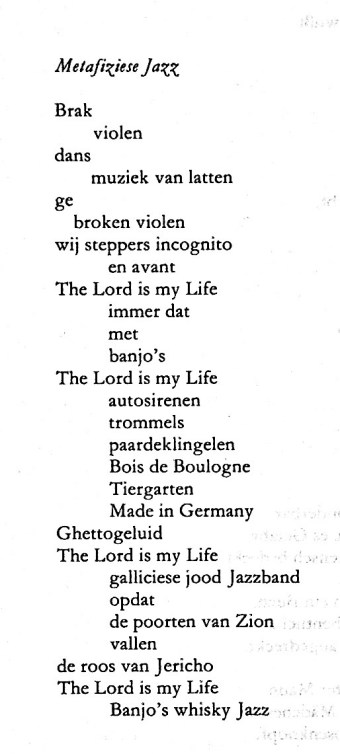 Metaphysischer Jazz Stuckenberg gewidmet Bruch Geigen Tanz musik von Brettern ge brochene Geigen wie Tänzer incognito en avant The Lord is my Life immerfort mit Banjos The Lord is my Life Autohupen Trommeln Pferdeglocken Bois de Boulogne Tiergarten Made in Germany Ghettogeläute The Lord is my Life galizische Judenjazzband auf daß die Tore Zions fallen Rose von Jericho The Lord is my Life Banjos Whisky Jazz