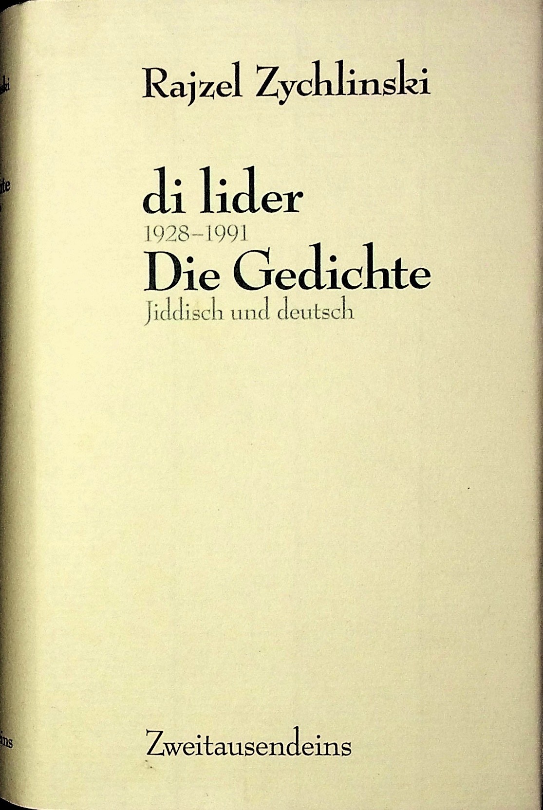 Deutsch von Hubert Witt. Aus: Rajzel Zychlinski, di lider. Die Gedichte. Jiddisch und deutsch. Frankfurt/Main: Zweitausendeins, 2003, S. 832f
