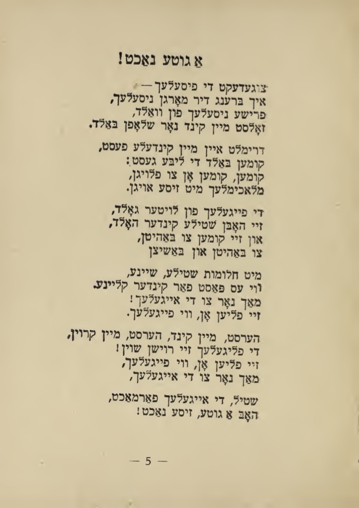 Heute ein Kinderlied, ein Schlaflied von dem polnischen, jiddischen Dichter Jizchok Leib Perez