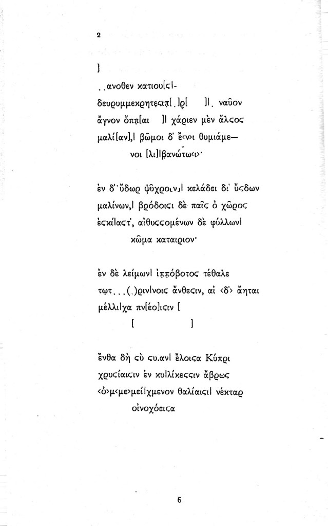 Aus: Sappho, Lieder. Hrsg., u. übersetzt von Anton Bierl. Stuttgart: Reclam, 2021, S. 8