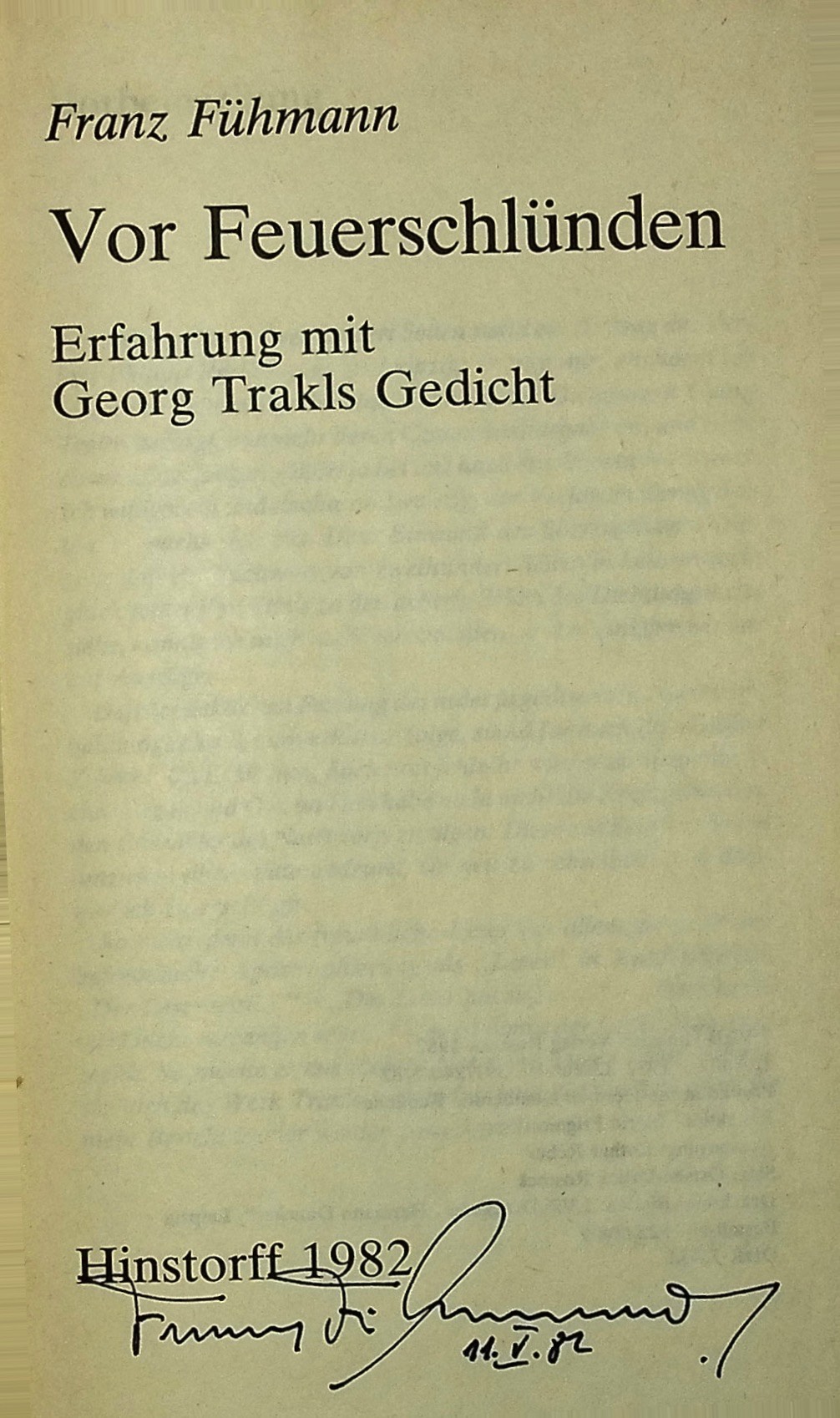 Aus: Franz Fühmann: Gedichte und Nachdichtungen. Rostock: Hinstorff, 1978, S. 17