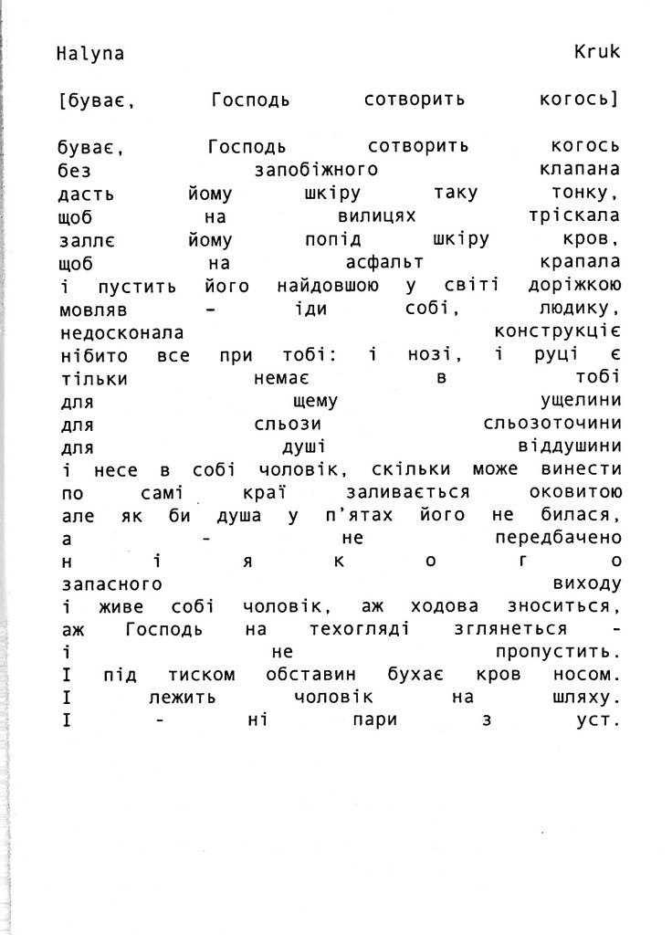 Halyna Kruk siehe auch Schreibheft 086 (2016) und lyrikline (wo man auch dieses Gedicht von der Autorin gesprochen hört) – Nachrichten in der Lyrikzeitung