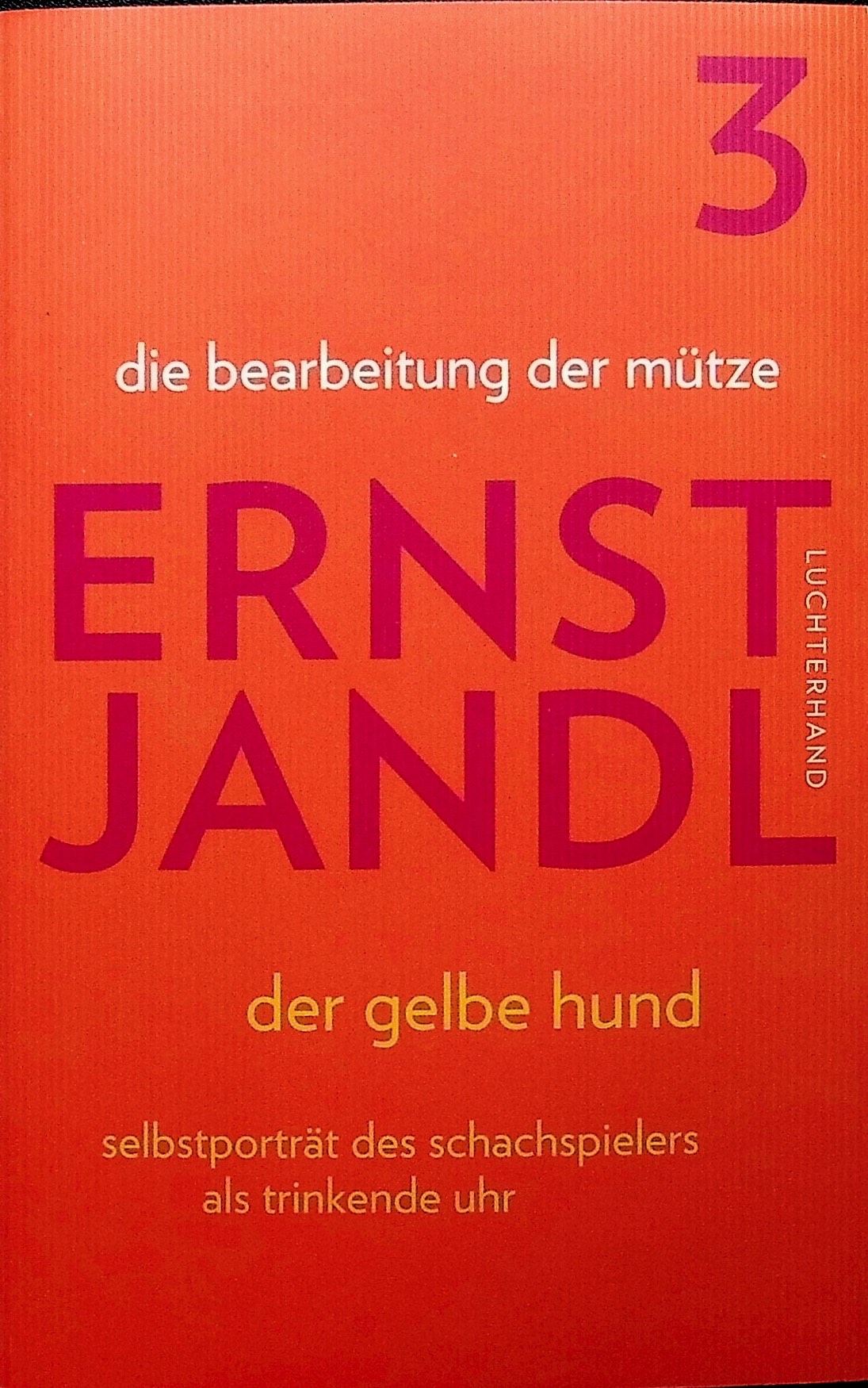 Aus: Ernst Jandl, Werke in 6 Bänden. Hrsg. Klaus Siblewski. Werke 3. München: Luchterhand, 2016, S. 413f (Ursprünglich aus dem Band „selbstporträt des schachspielers als trinkende uhr“).