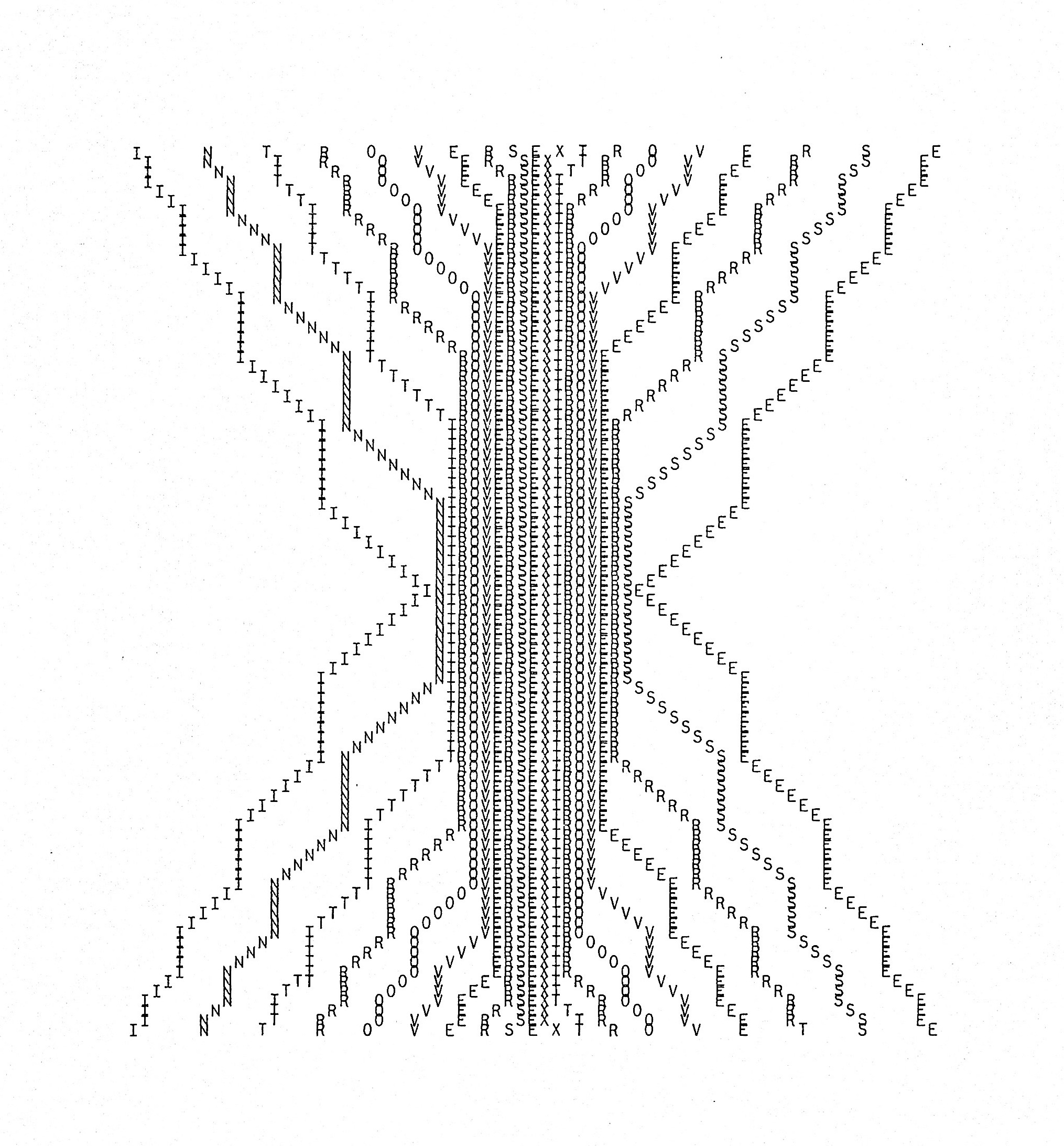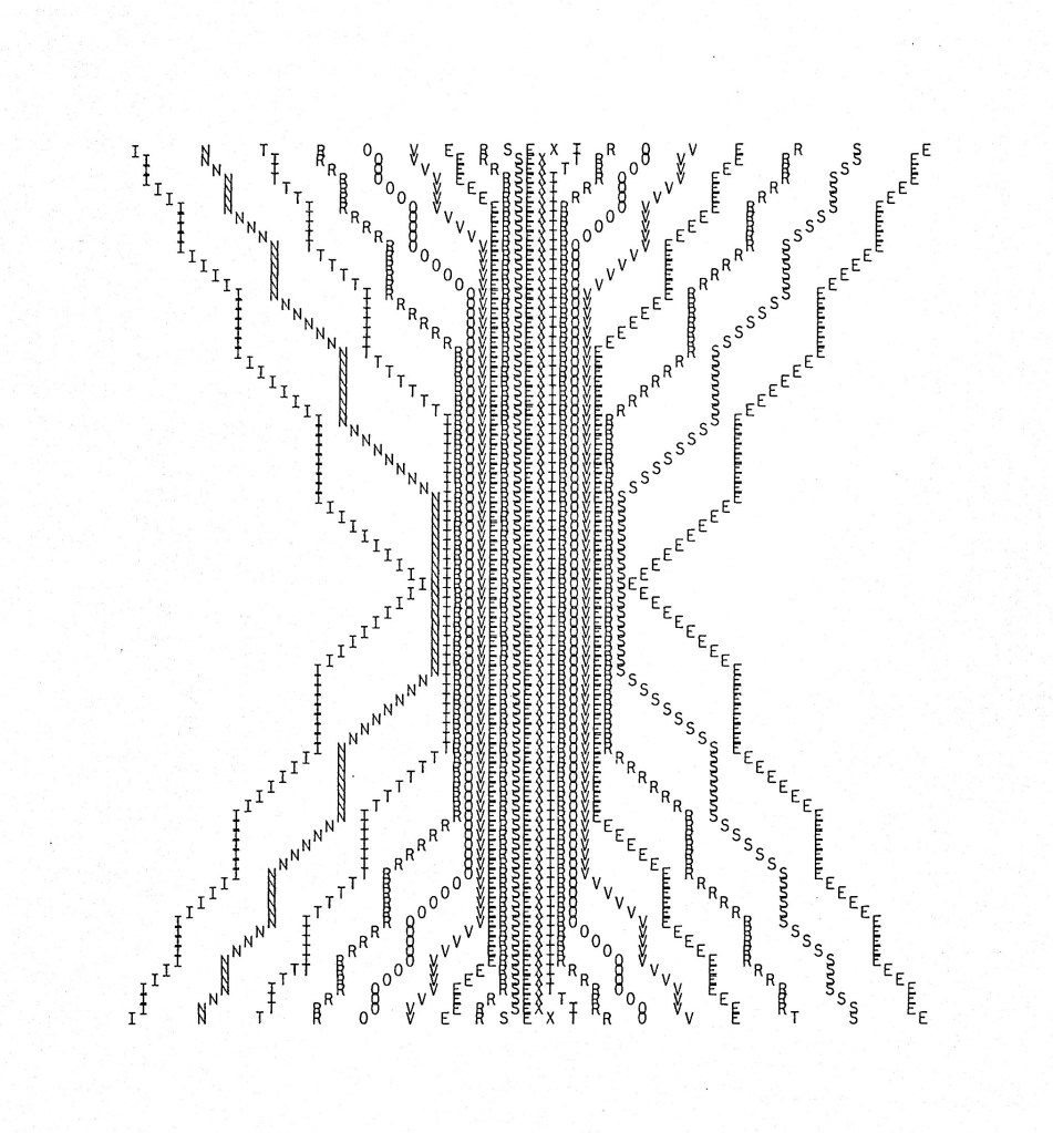Ruth Wolf-Rehfeldt: Introverse, um 1980, aus: Marvin und Ruth Sackner: Schreib/ maschinen/ kunst//. Mit über 570 Abbildungen Aus dem Englischen von Claudia Kotte. München: Sieveking, 2015, S. 162.