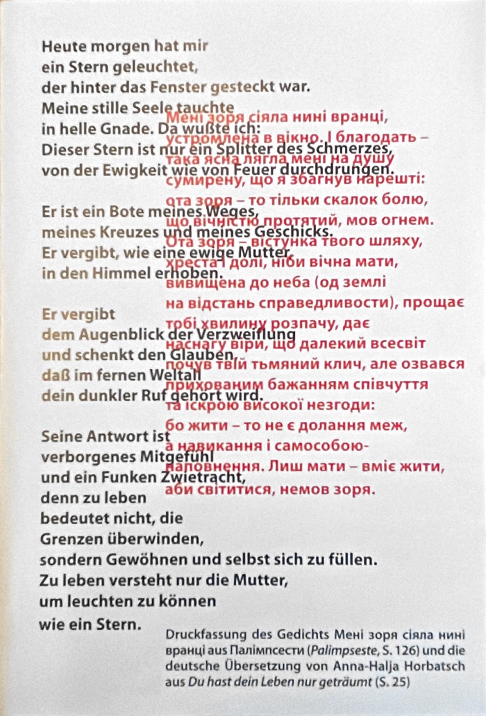 Aus: Versensporn 51: Wassyl Stus. Jena: Edition Poesie schmeckt gut, 2022 (Nur in einem Faltblatt, das dem Heft in den Exemplaren für Abonnenten der Reihe beigelegt war.)