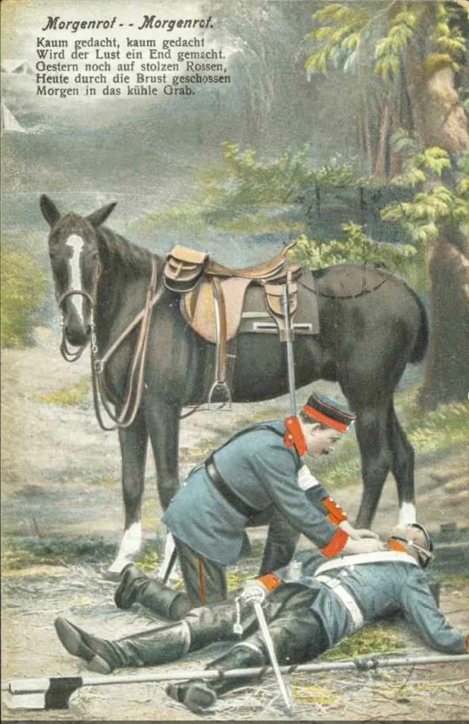 1940 erschien in einem Hamburger Verlag ein seltsam unpolitisches Gedicht, das an den Beginn des Krieges wenige Monate zuvor, am 1. September 1939, heute vor 85 Jahren, erinnert. Das Wort Krieg kommt darin gar nicht vor, dafür aber, nur dürftig im Reimwort versteckt, der frühe Tod: Heldentod (siehe Bildpostkarte nach dem Lied von Wilhelm Hauff).