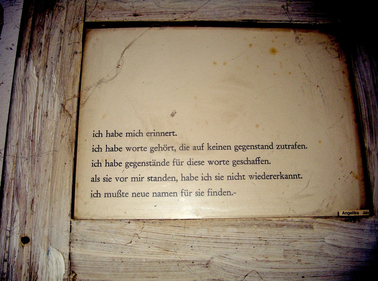 Ach, altes Ach Keine Achterbahn Eine Allee Kastanienbäume, nackt, mit seltsam weißen Kronen vom Schnee gezuckert. Es läuten die Glocken Der Herderkirche es fliegen die Vögel die Flügel im Schnee Und geschwärzt hat sich schon Alles Weiße im Wind Kerzengrade wird Nacht In den Schnee geweht