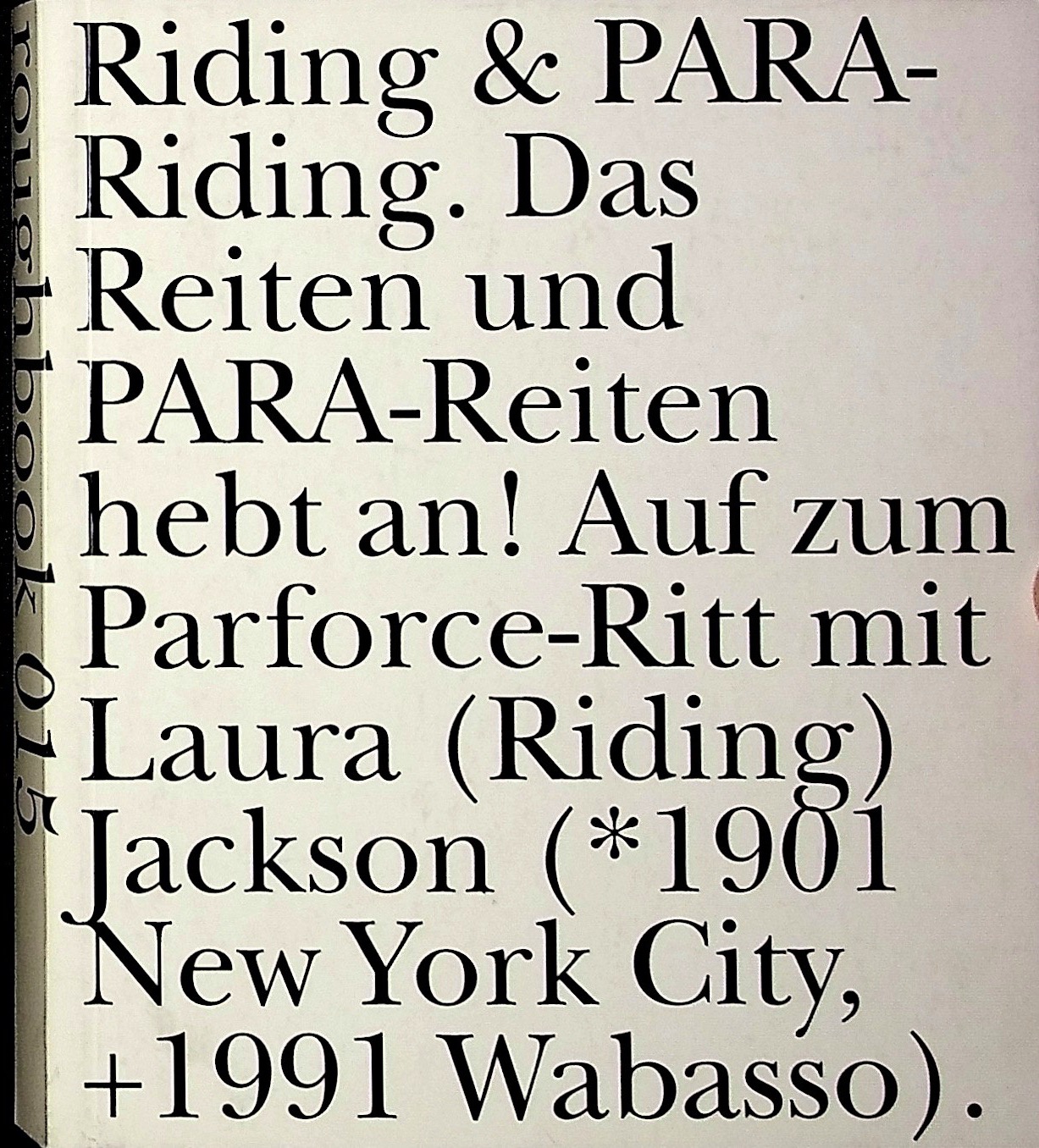 Aus: PARA-Riding von Laura (Riding) Jackson, Christian Filips und Monika Rinck. roughbook 015, Berlin und Solothurn, 2011, S. 40