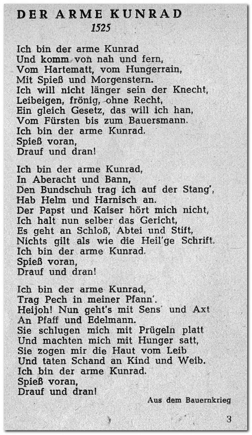 Es ist das erste Gedicht der Sammlung auf Seite 3. Es stammt aber nicht aus dem Bauernkrieg, sondern wortwörtlich von Heinrich Reder von 1888. Seine Lebensdaten seien nachgereicht.
